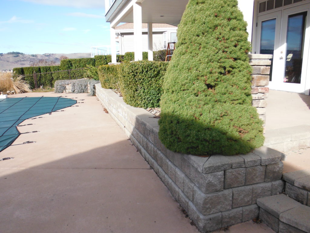 This exterior renovation updated an existing pool, patios and decks. New topless glass, short post railings were added on the upper deck to allow for maximum views of Kalamalka Lake. The lower patio shrubs were removed and modern candle lanterns were set into the planters. Soffit and strip lighting accentuate the sitting areas and help showcase the pool at night. The new stamped concrete on the decks and the pool surround add elegance to this exterior. With an additional dining area and outdoor kitchen incorporated into this luxurious space, the home is now complete for outdoor entertaining!