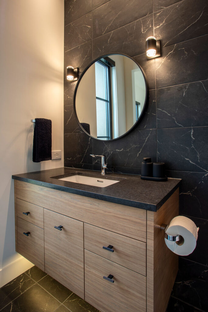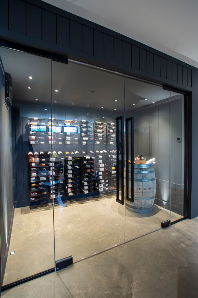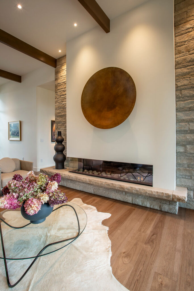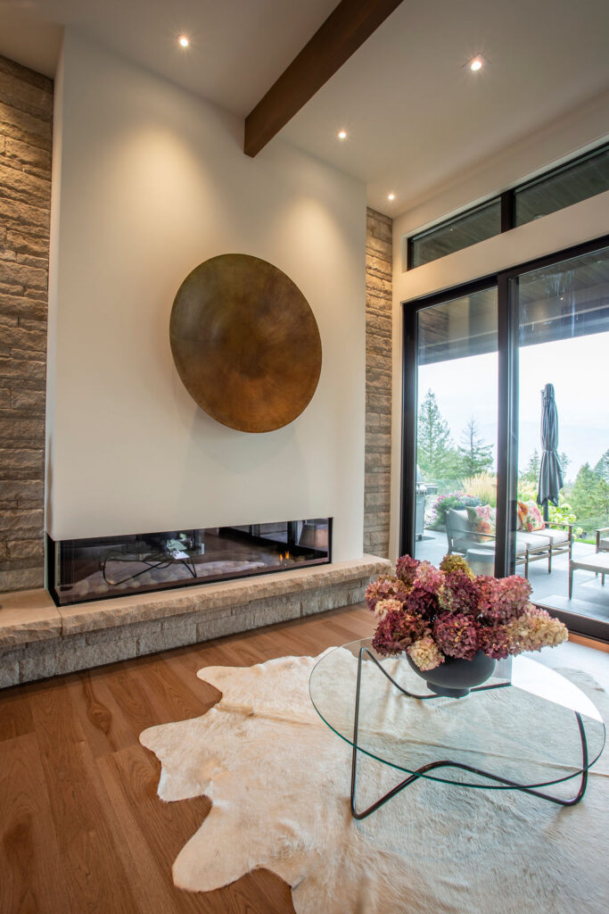 This stunning home in Predator Ridge epitomizes modern luxury with its open-concept design, catering to contemporary homeowners. The kitchen, dining, and living areas seamlessly blend, while the primary suite exudes opulence. A glassed entryway and treed courtyard create an inviting facade, complemented by a grand piano, a linear fireplace with natural stone, and wooden beams. Grand sliding doors connect the interior to a covered patio with garden views, and the galley kitchen boasts Calcatta Gold countertops. Additional features include a butler’s pantry, stylish powder room, and a modern guest bedroom with a dramatic ensuite. The primary suite offers a spa-like experience with marbled tiles, complemented by a thoughtful laundry room and mudroom on the same floor. The lower level hosts a glass-enclosed wine room, a cozy theater room, an office/art and music room, and a music-inspired bathroom. Throughout the home, materials like stone cladding, wood finishes, and marbled tiles create a lasting impression, combining functionality with elegance in this modern living masterpiece.
