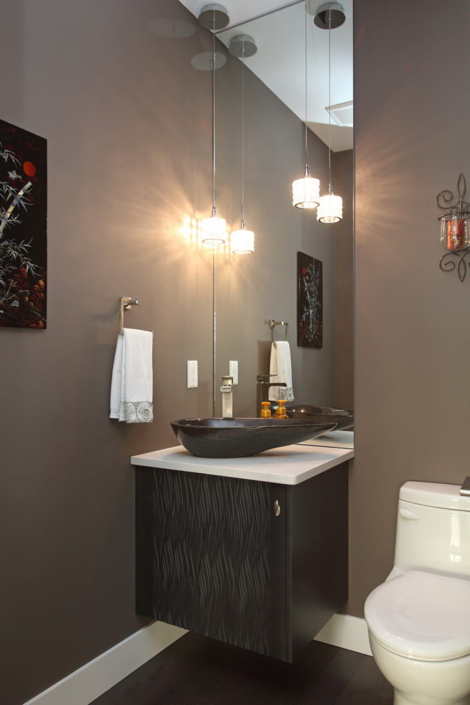 Environmental considerations include the low maintenance stucco and Hardi trim, exposed concrete decks, patios, driveway & sidewalks and high quality windows with remote blinds to repel the extreme heat of the Okanagan summers. There is a radiant heating system with 5 independent temperature zones to help reduce loads and cost. A 2×8 double staggered stud wall system with R32 exterior walls, R44 blown in insulation in the flat ceilings, and gasket drywall systems all create a very air-tight, highly efficient home with a comfortable indoor environment. Xeriscape landscaping with programmable irrigation system and artificial turf grass aid in water conservation. This home has Built Green Standards with Energy Star appliances, LED lights, on demand hot water, Low E argon-filled windows, HRV and high efficient mechanical systems. The clients used as many locally sourced products and companies as possible to help reduce their home’s carbon footprint!