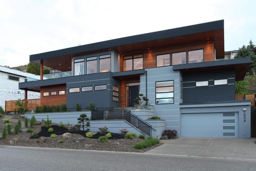 Environmental considerations include the covered decks which help to keep the home cool in hot Okanagan summers and the high quality windows with automatic blinds to repel the extreme heat. The home envelope is very tight for high efficiency, with 2×8 double staggered studs for added R value. There is a focus on energy efficiency by having an HRV, hot water recirc, humidifier, Energy Star appliances, and LED lights. A nine-zone radiant heat system is installed along with seven-zone ductless AC, which allows for a flat ceiling design. There is a Smart home processor Control 4 command system for lights, security, camera, climate, theater, music and blinds. The stunning cedar siding with low maintenance, clean look stucco with exposed concrete also adds to the environmental and aesthetic effect.