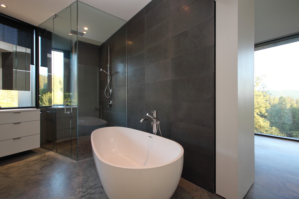 Poured concrete counters and concrete walls give a minimalist, natural feel that is both warm and utterly modern.