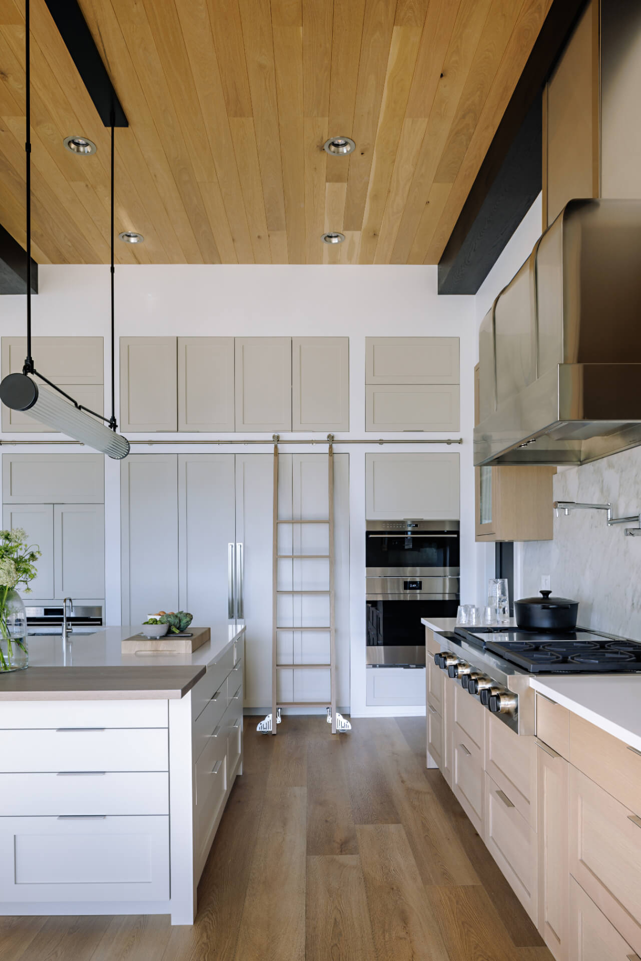 Walk-in pantries have been a staple of luxury kitchens for years. Now larders are making a comeback. These glass-fronted shelving units keep your staples handy in an attractive format.